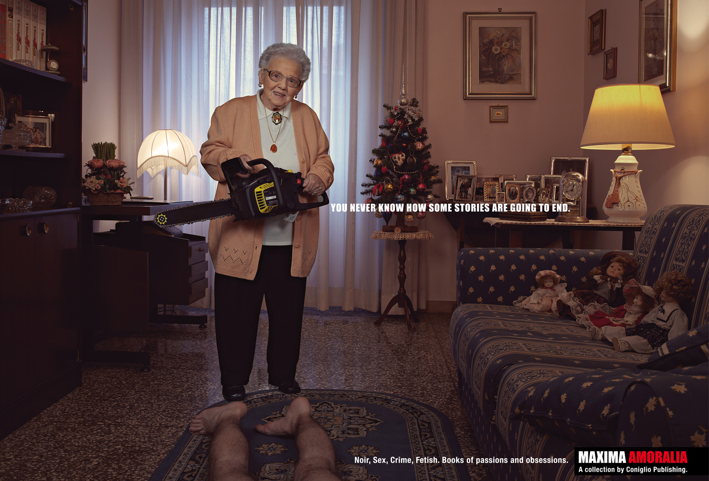 Bajo el eslogan «Nunca sabes cómo pueden acabar algunas historias» se presenta Maxima Amoralia, una colección de libros sobre «Pasiones y obsesiones». Y en verdad la elección de las dulces abuelitas asesinas es una buena forma de demostrarlo. Una curiosa campaña de Ogilvy & Mather Italia.